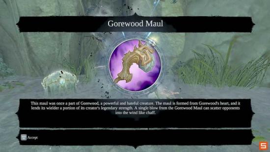 打败该BOSS之后可以得到特殊的副武器GOREWOOD MAUL,超高输出的巨锤(前期最好用的武器之一)