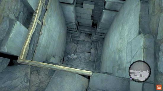 然后从三层右边的道路沿着墙壁捡取宝箱,拿取骷髅钥匙。打开CRAG一层的骷髅入口。注意要沿着右边的井道跳跃前进