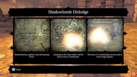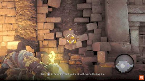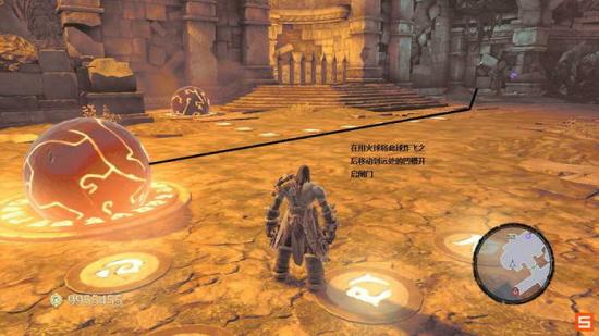 如本区域的火焰弹,玩家即可使用该火焰弹攻击敌人,也可向无法触及的机关投掷从而开启通道。后面有很多类似的物品(如爆炸弹),玩家一定要善加利用。故在后面的谜题解析过程中,玩家对于一些特殊的物件一定要合理思考如何使用,这样才能顺利的打开通道