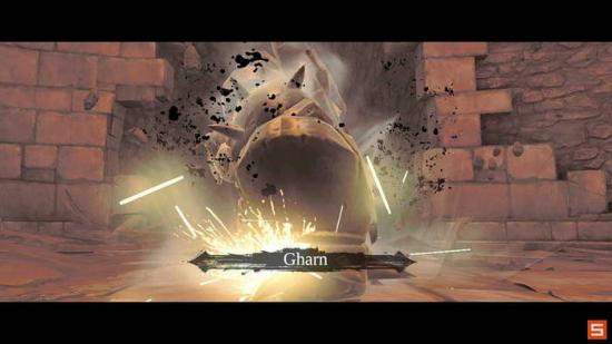 沿着西部区域一直往上,就来到本区域唯一的BOSS战斗 GHARN。这个BOSS其实也是要抓住他的僵直时间。在每轮攻击波完毕之后,他会自动有数秒的僵直时间,玩家就可以趁着此时进行进攻。而对于她的攻击招式,还是以按ALT快速躲避为主。该BOSS的主要攻击模式还是同前面几个BOSS一样,简单的单向冲刺。一般BOSS战斗不要释放过于复杂的招式,因为这样不仅浪费宝贵的战斗时间,而且也容易被敌人抓住机会反击。往往最简单的攻击方式是最有效的