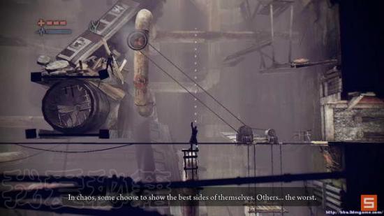 由于你只有一个可怜的弹弓当武器,所以全程以躲避为主。从高空爬行躲避下面的僵尸群体,中间可以在电线杆的楼梯上休息一会恢复耐力