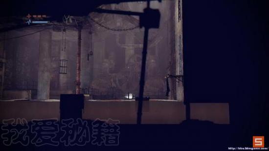 之后来到左部上边的开关,拉开开关,让箱子下坠到左边的平台,从而打开中间离开的道路