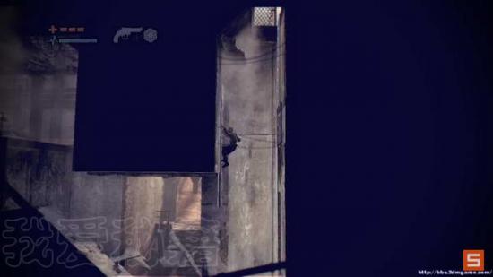 来到第一个安全屋。这里你需要跳到屋子右边,使用手枪射击支撑窗户的铁架,从而让窗户下落;然后跳到窗户边上,在跳到对面的高台