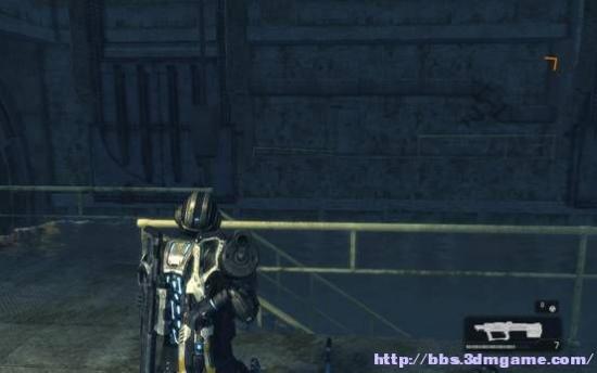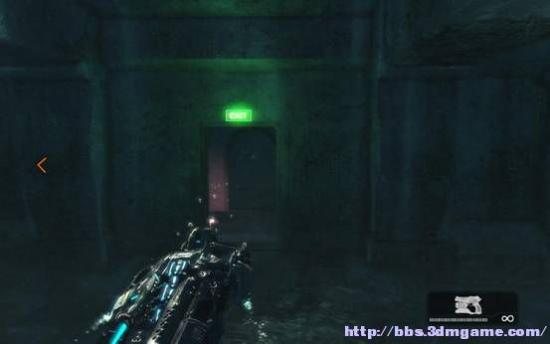 过关后进入水里,先往右走就是这个绿色安全出口拿火箭筒。这个水里没什么太多说的,一共就有两个红外机器人和几个爬行机器人。