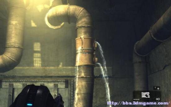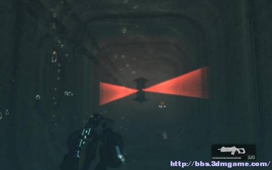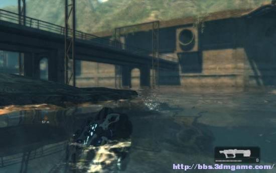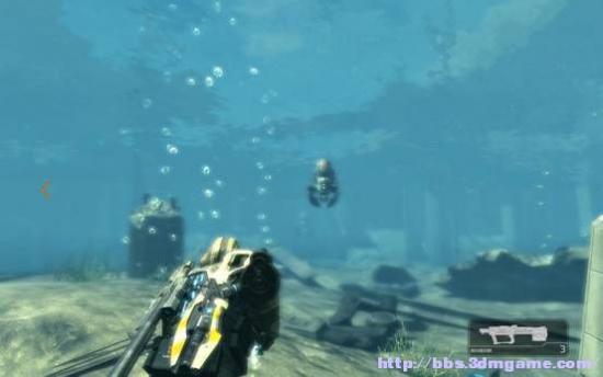干掉水里机器人后开启机器的开关,机器鱼出现,马上控制一个,之后你就引怪就可以了,偶尔开了枪。没有鱼了,往目标走到下一场景。