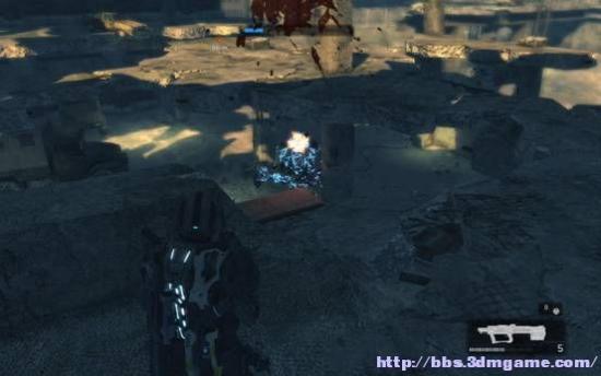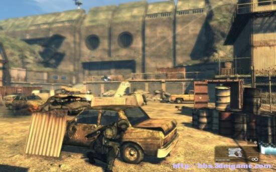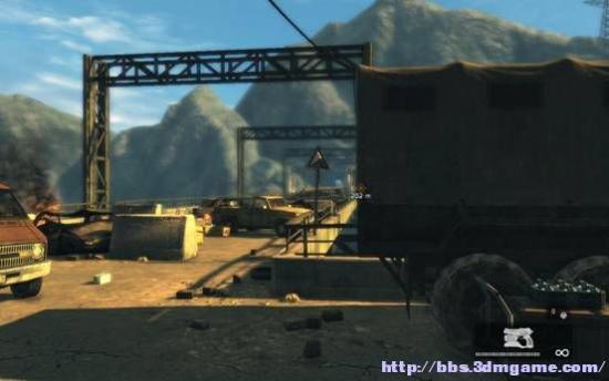 这个场景兵比较多,分为两个部分,开始部分和中间部分 开始的部分会有小兵和两个飞行机器,手枪站在卡车后面慢慢磨死的。