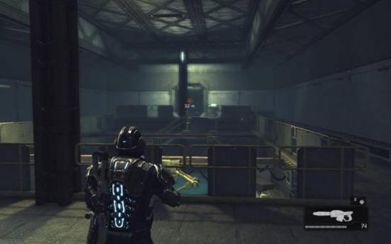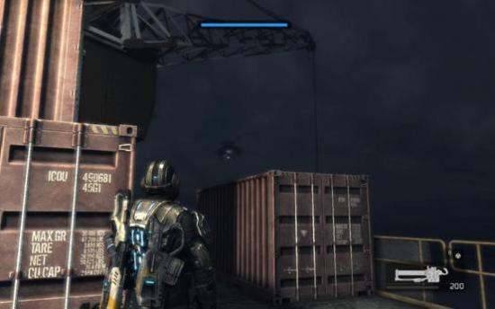 在清理几个爬行机器人,传过桥后来左边的机器处,这里会有飞行机器人。。打完后去开门,到下一场景。