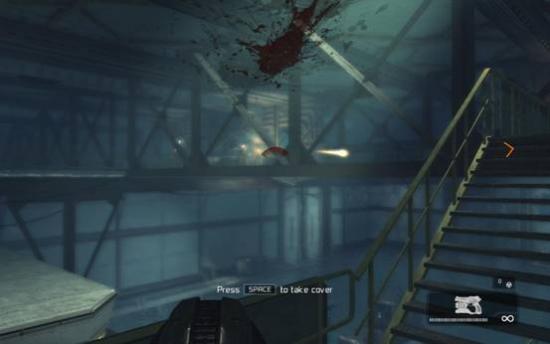 清理晋级冲锋后,下面有补充弹药接着清理杂兵。之后下水换下一场景。