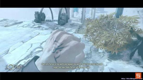 梦中一位神秘人物赐予你特殊的魔法技能 BLINK,并且交给你一个机械心脏,用来侦测附近区域的符文和石骨。