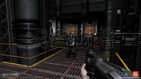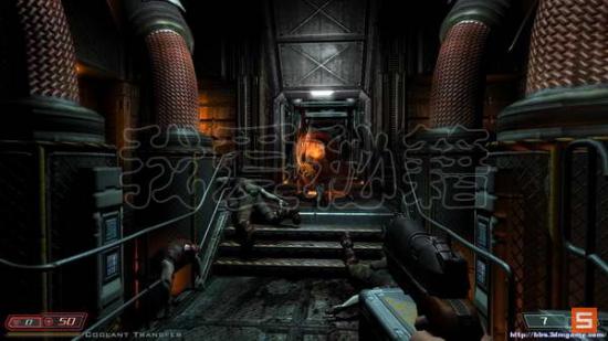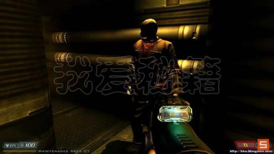 来到控制室核心,会出来两个守卫欢迎你。当然,这些家伙不是帮助你的,而是来杀你的。DOOM 3的一个原则就是,所有活着和死着的东西都是一样的。不论什么生物,都是你的敌人