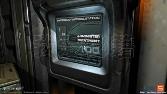 之后来到下图所示的治疗补给点,继续直行来到最上层的控制台;获得安全卡从而能够打开下面左边的大门