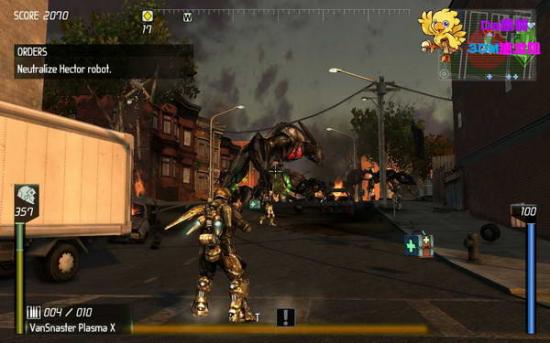 从飞行船下来,画面不再晃(舒服多了)就开始清除虫子!游戏没有弹药限制,换弹有些像充能一样!需要等待一段时间才可以再次射击