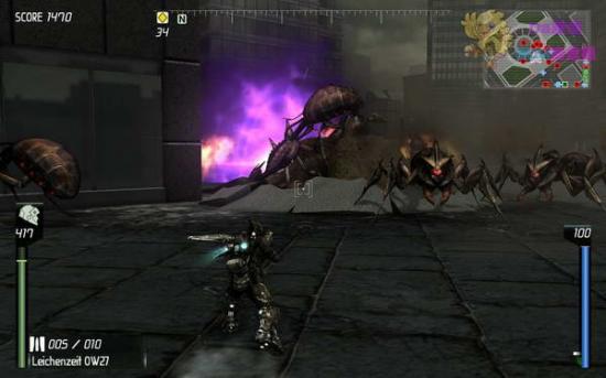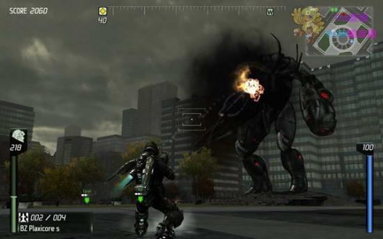 把所有地穴炸掉了,就会出现上图的大型BOSS,拿着导弹武器,一直攻击他的胸口!