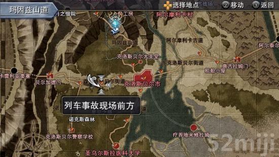 驱车来到该区域,步行来到下层的列车事故区域。首先同列车员对话,之后分别调查列车头和两侧的三处痕迹发现其中的怪异