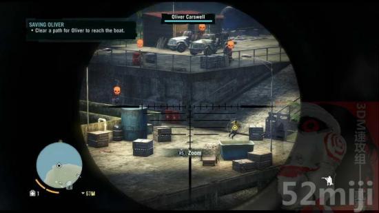 3.来到高出,赶上敌人正在转移OLIVER,利用狙击枪为他争取逃跑的时机。