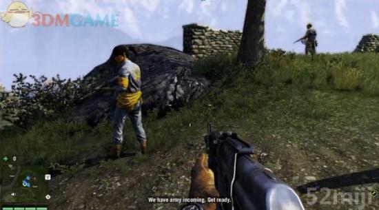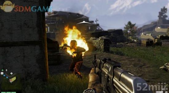 游击队员会跑去保护第一片田地,此时可以回到院落里,操作机枪扫射出现的敌兵。当大火烧起来,用滑索迅速赶到那里。
