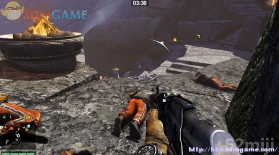先不要往正殿上冲,由于台阶较多,攀爬起来很费时间,这样容易遭到顶层狙击手的击杀。现在要由这层平台往右侧的那尊神像跑过去,经过正殿的方向铁定会被发现的,出现5分钟的倒计时,需要在时限内到达顶层解除引爆装置。
