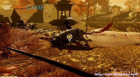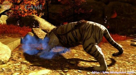 往前遇到魔兵,他正要刺杀倒地凯林加,方才那只白虎突然现身将魔兵扑杀。此时白虎的伤势完全好了,成了凯林加的伙伴。白虎可对敌人隐身,主角还能给白虎设定攻击的目标。白虎攻击目标时,凯林加可由目标的背后施展暗杀。