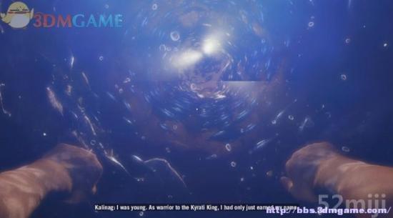 穿破冰层游在寒冷的水潭中,朝着上方的光亮游去。想起国王告诉他,如果透过唐卡画看到奇妙的天堂景色,并在那里生活下去。