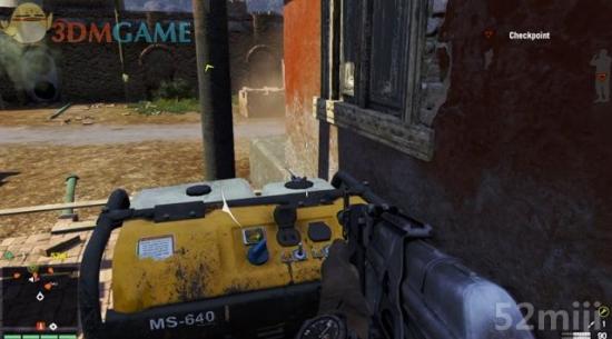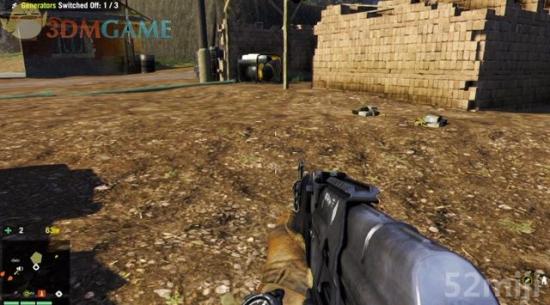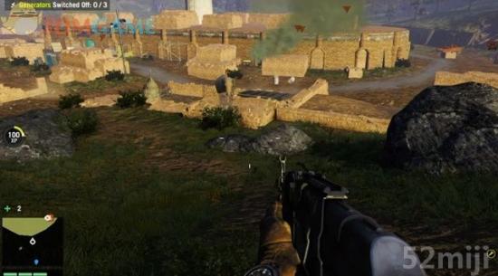 现在要前往砖厂关闭三台发动机,用相机将敌人标记一下。如图所示,正对面冒着绿烟的地方就是第一台发动机,附近没有敌人看守,可以避开巡逻的吉普车过去关掉了。
