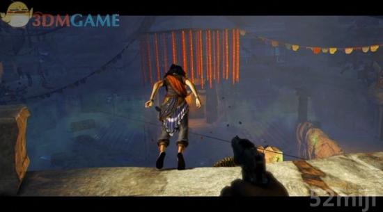 在门口的右侧找到锚点,可以用绳索爬上去,再朝附近的锚点抛绳索荡到门上方的悬崖上,这里的排风口可以进去。