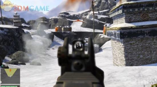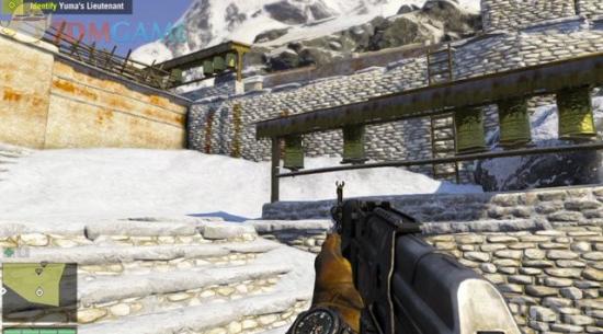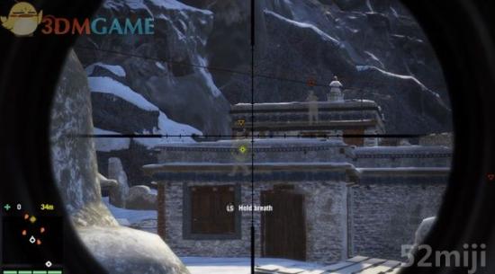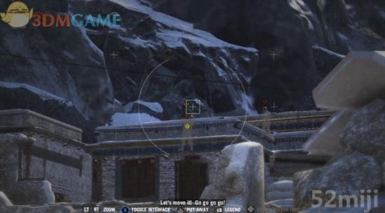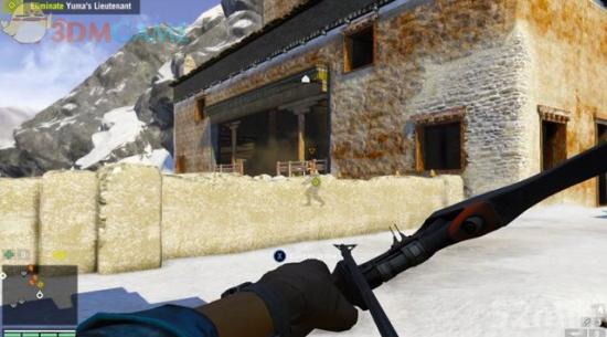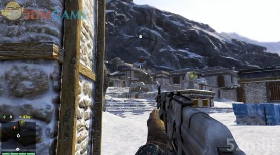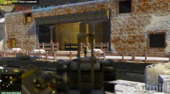 接近村落,躲到围墙这里将里面的敌人标记一下,目标到在一幢小屋的顶部。这里有潜杀和激战两种策略可选。笔者身上带有狙击步枪,所以潜杀这法子就免了。
