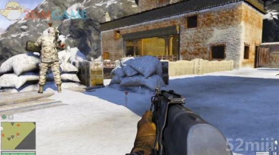 翻墙进去,往左爬到平台上,这里离那幢小屋稍近点,位置也稍高一些。只是狙击的时候避开左手边的士兵视线,等他转身再动作。