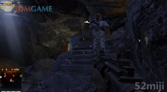 再往佛像的右边望去,那边的洞口是离开的路,那边只有两名士兵。用相机将这里的敌人都标记一下。
