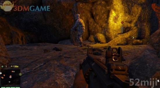 下座洞腹里只有两名士兵,其中一名重装火焰兵,不要招惹,完全的避开。标记后等重装兵走开,用石块将那名普通士兵引到洞里杀掉。剩下的重装兵就很好躲避了,爬上台阶穿过洞腹进到对面的山洞。