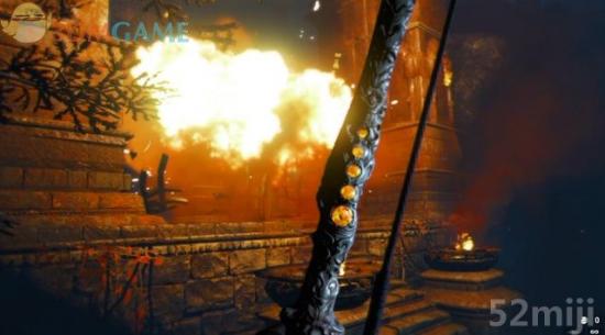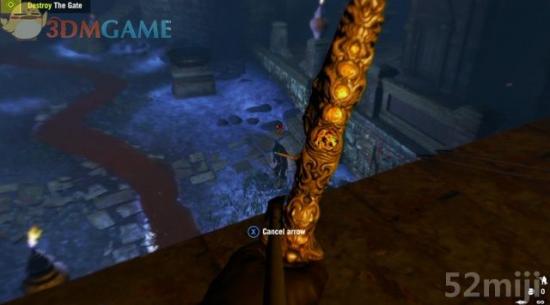 来到一道平台上,尤玛和凯林加的身形不断交替变幻着,最后化作烟雾消逝。此时阿基手中多了一副弓箭,用它来清除院落中的古代武士。不要跳下平台,这样容易陷于围攻,只悄悄的躲在平台上,居高临下且不易被发现。