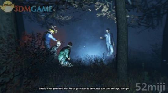 瑟巴和手下正在处决游击队员,说:“当你站到阿米塔一边的时候,你就选择亵渎了传统与神明。你选择了支持罪犯与神明为敌,我现在这么跟你说……今天你选择割开自己的喉咙,而非我。”