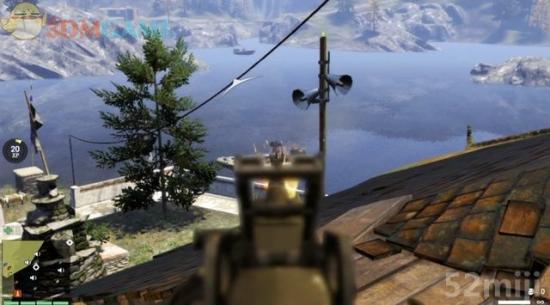 这里要操纵平台上的机枪,先射杀机枪艇上的士兵,先右后左。每只艇上有两名士兵,一名操持机枪的,一名候补。
