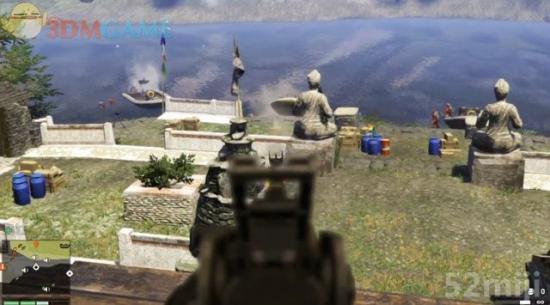 摧毁两架直升机后,回到神庙的三层,用机枪射杀正面的两只机枪艇的枪手,任务完成!