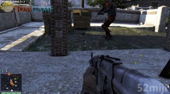 回到地面,沿楼梯到三楼,这里有三名敌兵,可以连续暗杀。不过笔者这里触发了战斗,会有4分钟的时限,到时间炸弹就会引爆。不过没关系,这里已经离炸弹很近了,耐心的清理周围的敌兵。