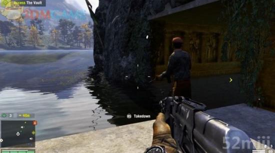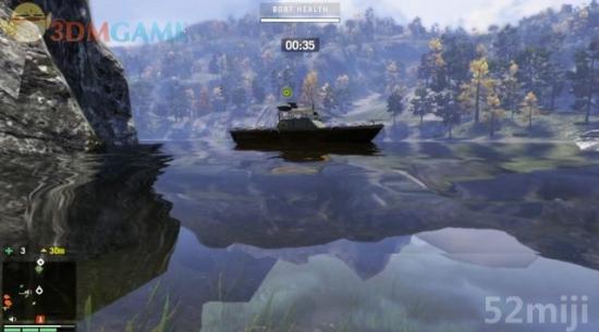 敌军的增援会在1分钟后抵达,此时不必恋战,迅速冲向岸边跳到水中,朝湖里一只快艇游去。