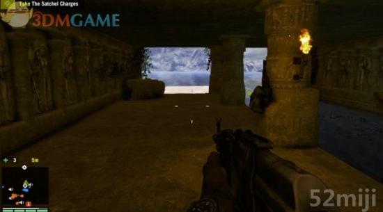 离开地宫,赶到神庙右侧的楼梯口,在墙上安装第一枚炸弹。