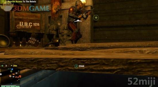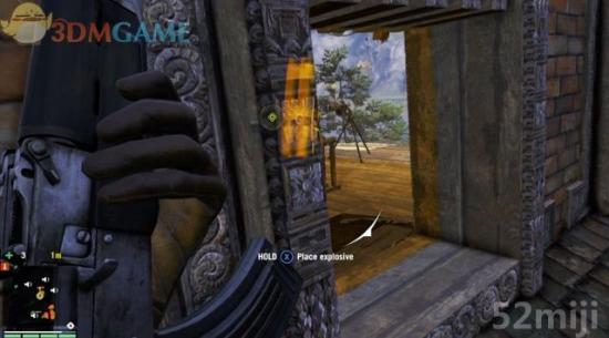 前往三层,这里只守着一名敌兵,射杀他后跳窗到外墙安装第二枚炸弹。