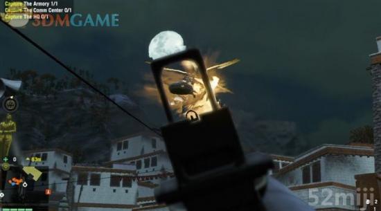 夺取军械库后,空中出现敌军的武装直升机,身上有火箭筒的话直接将之轰毁,这样就可以安全脱离此地。没有携带火箭筒可以从阵亡的游击队员身上拾取,或者击毙一个拿。