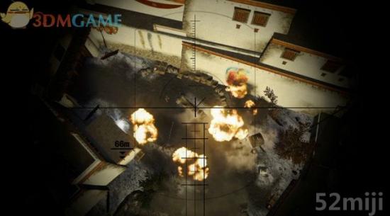 这里不必急于冲锋,沿着右侧屋后的路前行,清除挡路的敌兵。注意街道的左侧屋顶还有名榴弹兵,同样用狙击步枪或火箭筒清除掉。