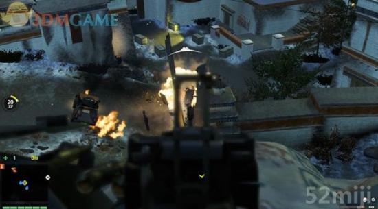 进到要塞里清理前面的几名敌兵,会有一辆武装吉普车冲过来,朝它的尾部扔手雷炸毁它。部分游击队员身上携带有火箭筒,也有机率会炸毁敌人的重型兵器。