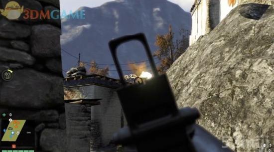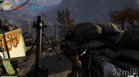 观察雷达小地图,有间屋子顶部有迫击炮,清除附近的敌兵夺取它。一炮在手,天下我有。
