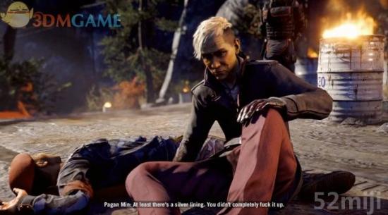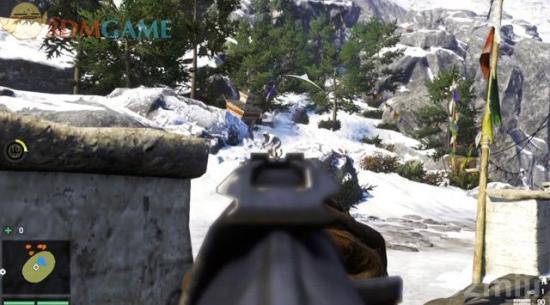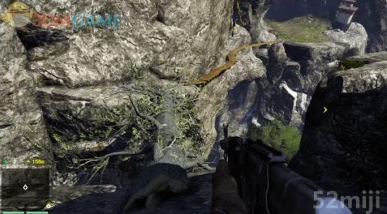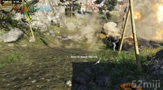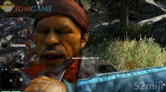 在开始有3名敌兵过来搜索坠毁的车辆,现在阿基手上只有一把砍刀,抄到一名落单敌人的身后挥刀斩杀,从地上拾取步枪。养成搜尸的好习惯,能够及时的补充弹药和食物。