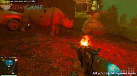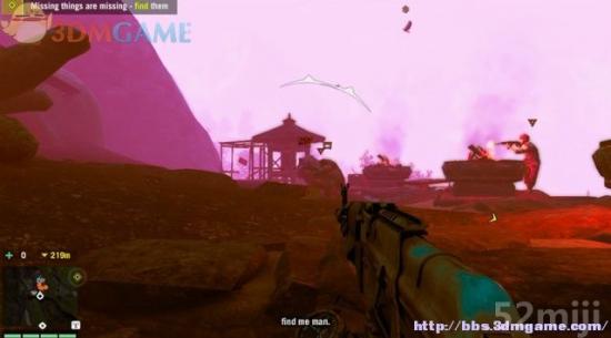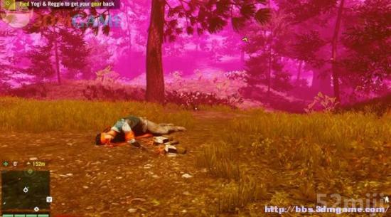 来到洞外,由于阿基处于中毒状态,眼中的世界是别番模样,天地万物流动变幻着各种色彩。现在阿基的身上没有武器,往前不远的地方有具尸体,拾取步枪和弹药。