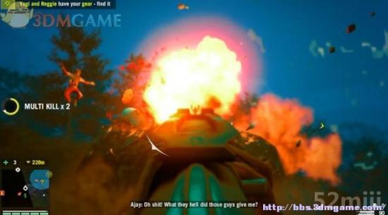 上方的岩石上出现两名掷弹手,快速射爆油桶将他们炸飞。过河后往右下方的瀑布探索,有只雅伦面具。