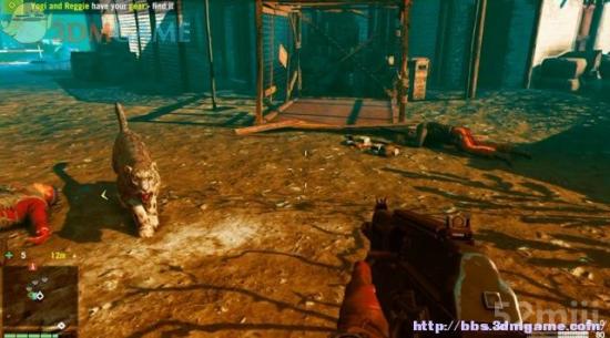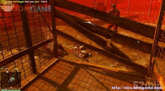 跑过去拿装备,却发现是陷阱,被铁丝网围住。这里只能用刀拚了,踢开木栅射杀前面的敌兵。