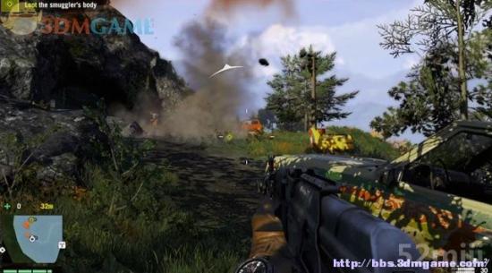 目标车辆驶向一处山坡,在这里展开枪战,将所有的敌兵清除,上前搜索走私者的尸体取得一把钥匙。