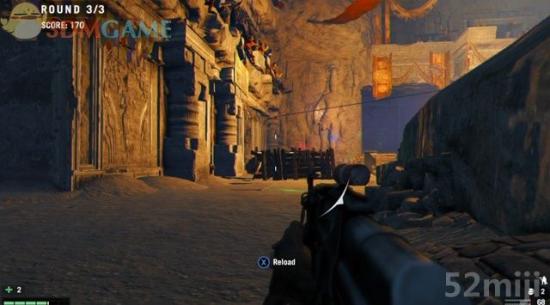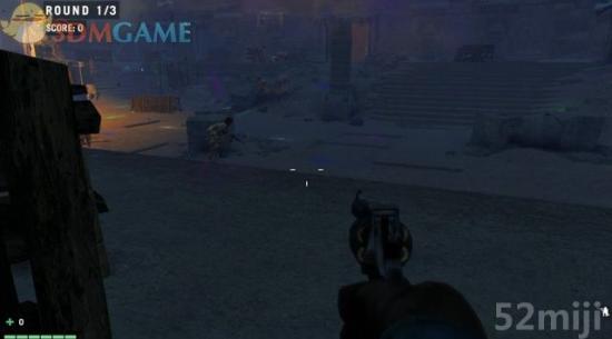 第一种模式,总共挑战三个回合。第一回合手里只有把手枪,开局不要被敌人发现成为攻击的目标,让两队的士兵去残杀,自己就躲到掩体后放冷枪,或是跑到尸体上拾取步枪、子弹、道具,成为后面关卡的资本。