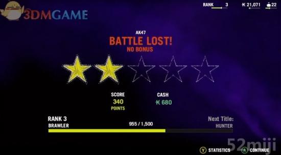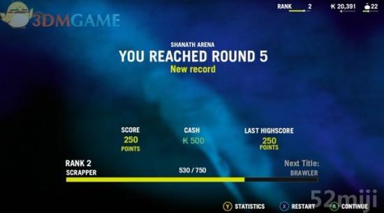 同样的,被杀死后进入统计表单,列出挑战的回合数、获取的点数、评价及称号。
