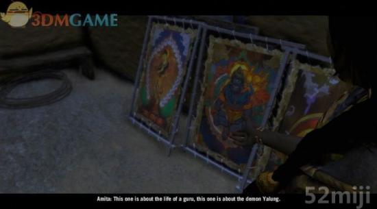 阿米塔指向一边的画作说:“这一幅画的是古鲁的一生,这幅画的是恶魔亚隆,还有那幅是希拉女神,这一幅则是跋陀罗(十八罗汉之一,和阿米塔女儿一样的名字),还有塔伦·马塔拉(Tarun Matara)。马塔拉是一位存世的女神,如果你相信瑟巴的话。”