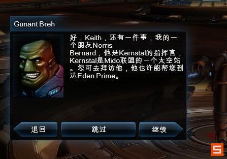 剧情继续,GUNANT为感谢KEITH的帮助,将飞船BETTY送给了他,并且指示KEITH前往他的朋友NORRIS的星系之地,询问关于EDEN PRIME的事宜